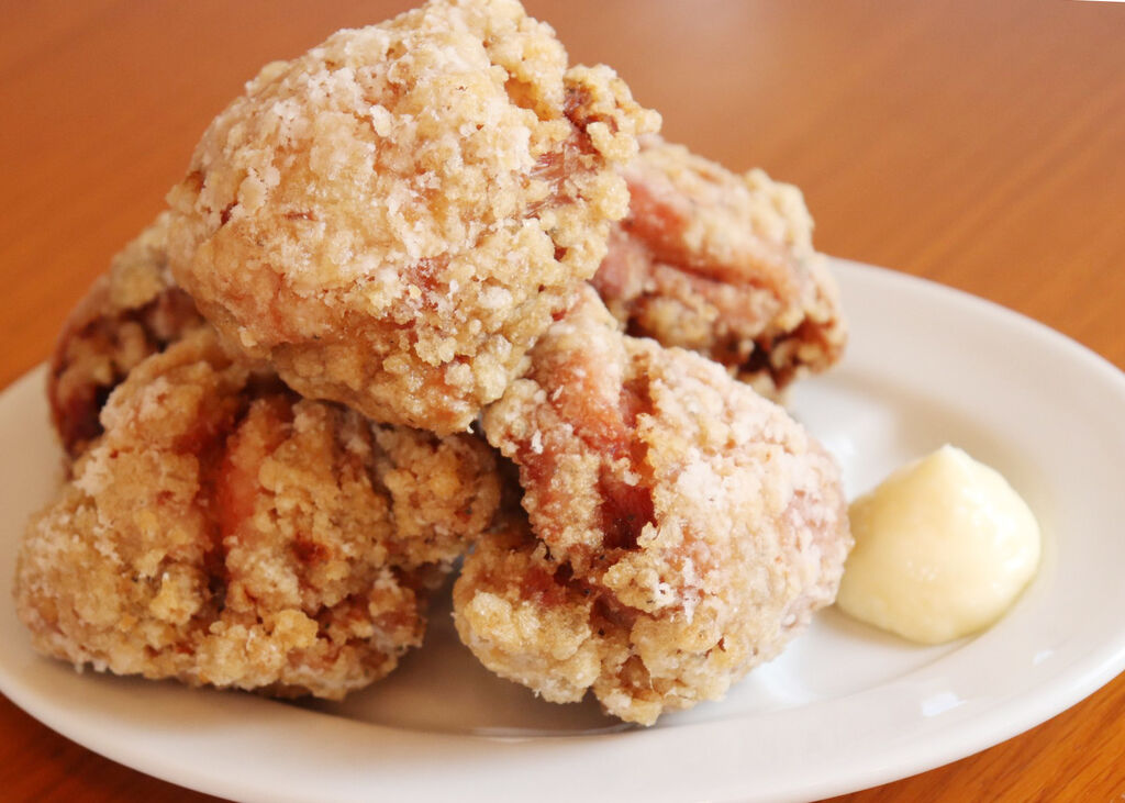 拳サイズのインパクトある大きな唐揚げはニンニクと生姜がしっかり効いたパンチのある一品です。