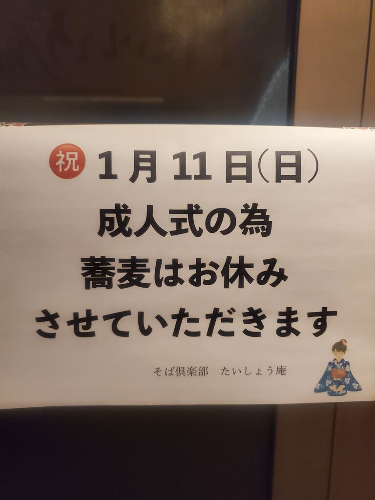 お知らせ 1/11(日)そばはお休みさせて頂きます(26/01/05)