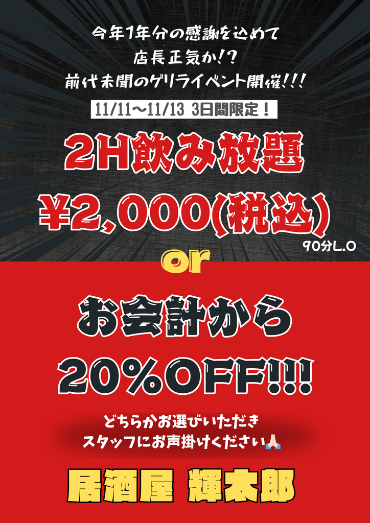 お知らせ 【3日間限定!!】ゲリライベント開催します!!(25/11/12) UP
