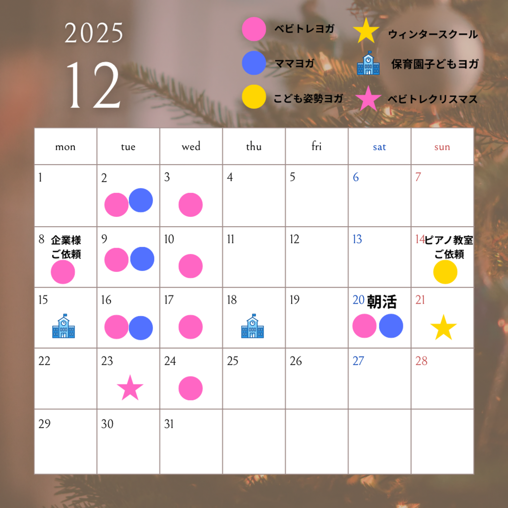 クリスマスニュース 12月のレッスン予定(25/12/03)