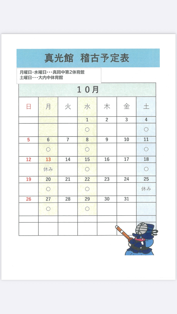 お知らせ 10月のスケジュール!(25/10/04)
