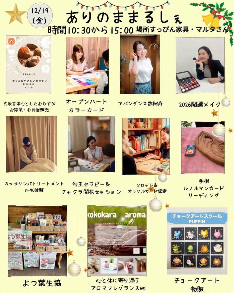 イベント 「ありのままるしぇ」に出店します。12月19日(金)10:30〜15:00 すっぴん家具マルタ(25/12/16)
