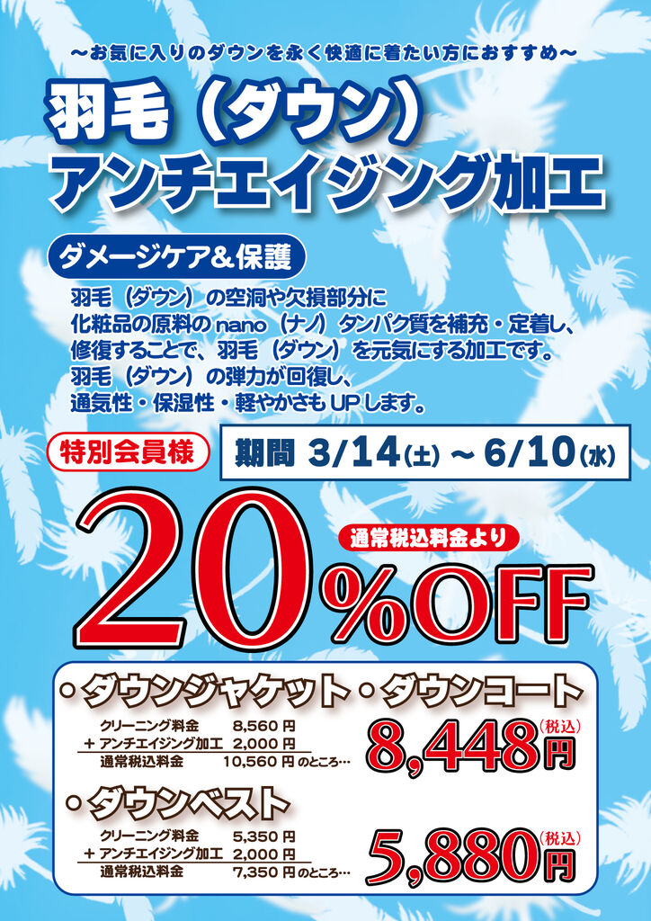 そんな時は、当店の『羽毛アンチエイジング加工』がおすすめです!