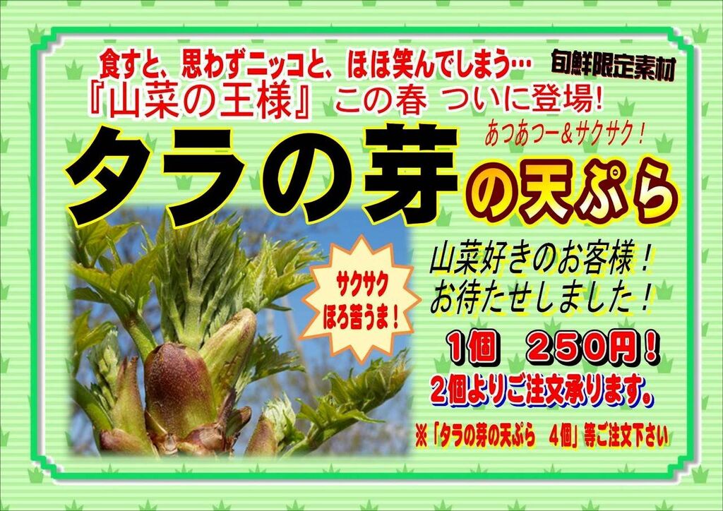 新サービス 売り切れ御免 タラの芽の天ぷら 今だけ!(26/04/24)