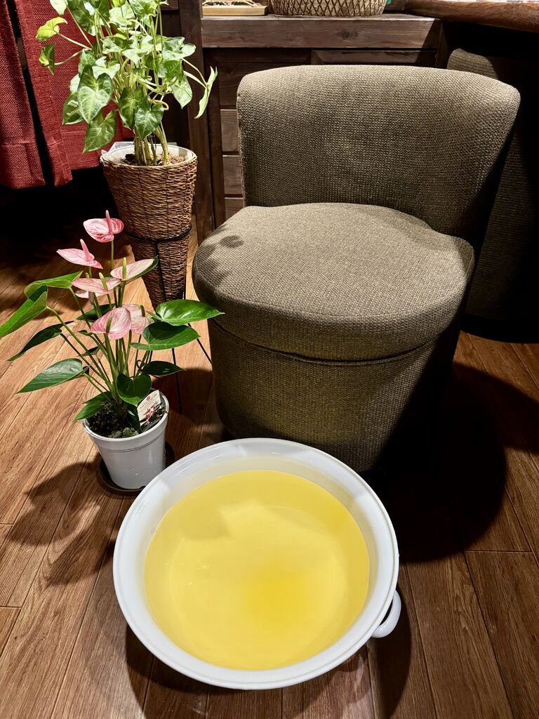 足つぼコースは、足湯で温めた後、クリームを使って手技で解します。