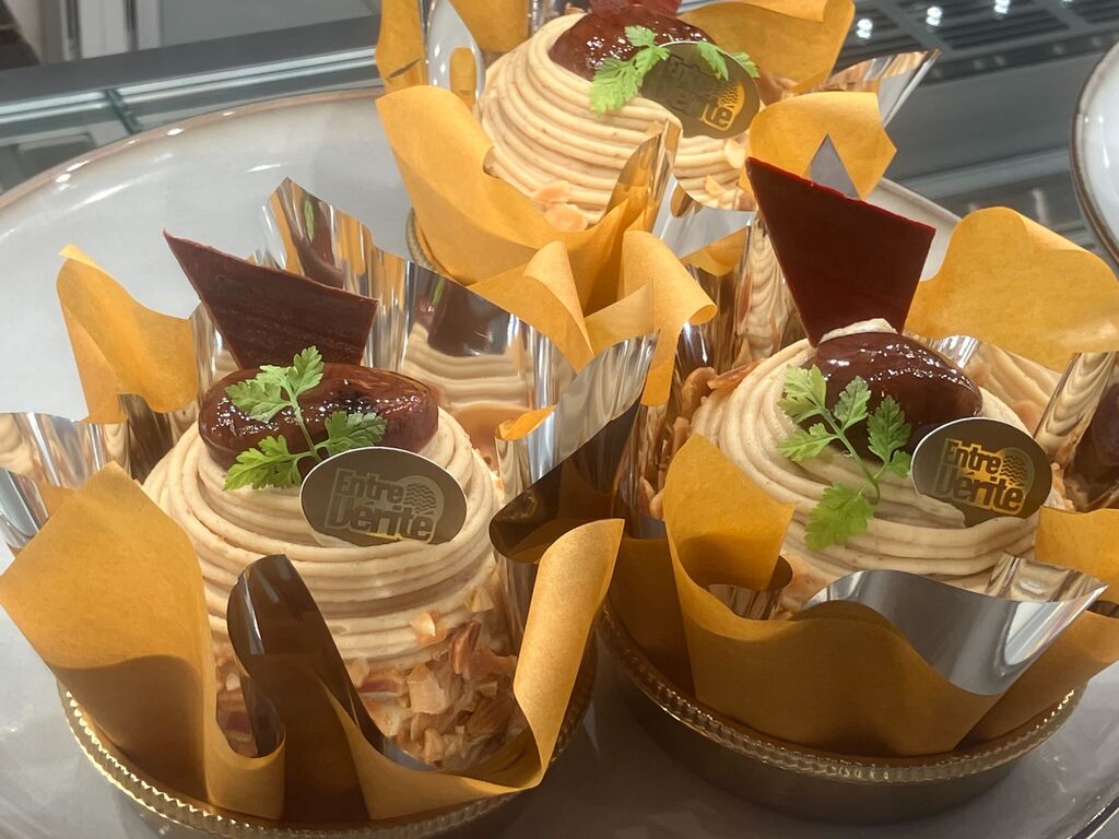 熊本県産の栗を使用した栗ペーストに、ピスタチオダクワーズとメレンゲ。