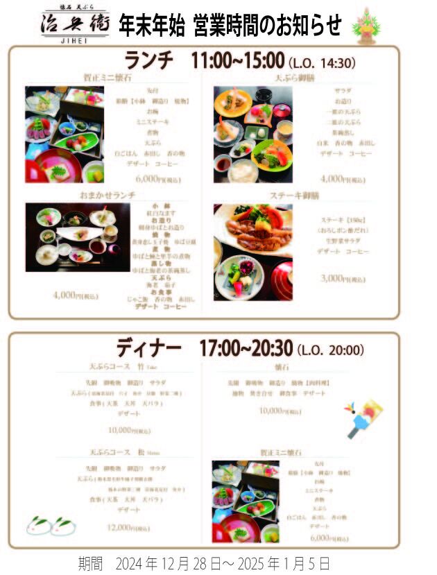 年末年始ニュース 年始の特別メニュー&営業時間のお知らせ(25/12/17)