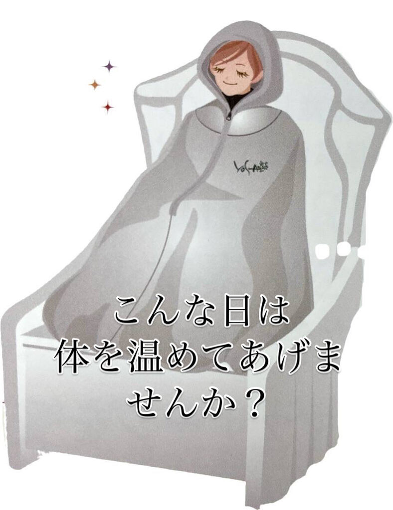 ケープをはおり全身にスチームを浴びることで大量に発汗、冷え性の改善も期待できます。
