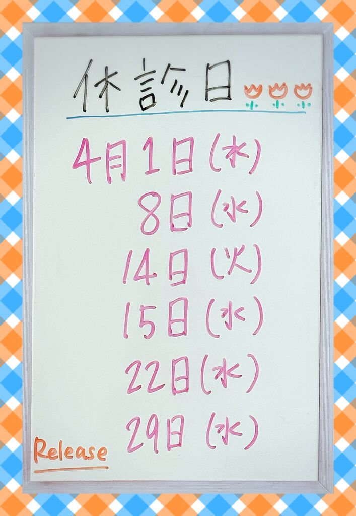 お知らせ 4月の休診日のお知らせ(26/03/29) UP